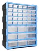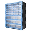 These DIY Storage Workshop Cabinets are ideal for keeping your small parts and pieces neat and organised. They have a whole host of drawers to be filled, helping you to keep everything organised. These are perfect for DIY tools, sewing kits, craft items and more. DIY Storage Set Features These storage units are made from a tough plastic which is both lightweight and durable. Each drawer has a protruding handle at the front for easy access, and each drawer has a stop latch inside the main unit to stop is coming out all the way. The cabinet can be used freestanding, but there are also slots on the unit for fixing to a wall if required. There are grooves on the top of each unit and ridges on the bottom, which allow you to stack organisers on top of each other if necessary. This allows you to slowly build your kit by adding a new one when necessary. Drawer Sizes These particular units have 39 compartments for storing your items. The configuration sees 30 smaller drawers sat above 9 larger drawers, to allow for items of different sizes to be stored without having to purchase multiple storage cabinets. The smaller drawers measure 5cm x 3.5cm and are 14cm deep, making them perfect for screws, washers and other small items. The larger drawers below measure 11cm x 6cm and are also 14cm deep. Each drawer also has a removable divider, which can be used to split a compartment into two. This allows you to store two separate sets of items in one drawer. Ideal for Everyone These DIY Bits Organisers have plenty of uses and are set up in seconds. The set comes pre-assembled, so installation is completed simply by removing the packing! For DIY enthusiasts there is plenty of space for a myriad of tools. They're ideal for storing screws, nails, bolts, washers...you get the idea! Craft lovers will also find them incredibly useful, with enough space for sewing threads, model paints and more. They're also perfect for office storage for stationary and other bits and pieces. 39 Drawer Storage Unit Specifications: