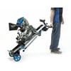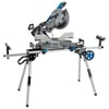 Extending mitre saw stand with height - adjustable work - support rollers enabling use with timbers over 2M in length.