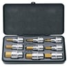 | Professional Quality, sockets with insert bits. Each socket is manufactured from hardened and tempered chrome vanadium steel that's chrome plated for corrosion protection. The 22mm long bits are titanium coated for improved longevity. Packed in heavy gauge steel storage case for added durability. Contents: