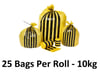 Black and Yellow Tiger Stripe Waste Sacks - Large - Heavy Duty - 15" x 28" x 39" - 25 Bags Per Roll - 10kg - [OL-OL705/A]