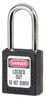 | Black Zenex™ Thermoplastic Safety Padlock, 1-1/2in (38mm) Wide with 1-1/2in (38mm) Tall Shackle, Keyed Alike The Master Lock No. 410KABLK Zenex™ Thermoplastic Safety Padlock, Keyed Alike – multiple locks open with the same key – features a 1-1/2in (38mm) wide plastic blue body and a 1-1/2in (38mm) tall, 1/4in (6mm) diameter metal shackle. Designed exclusively for Lockout/Tagout applications, the durable, lightweight, non-conductive lock body is easy to carry and padlock features high security, reserved-for-safety cylinder with key retaining, to ensure padlock is not left unlocked.