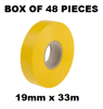BOX of 48 Rolls of Tape - Yellow Electrical PVC Tape - 19mm x 33m - Meets International Electrical Board Standards - [EM-5001-48-Y]
