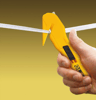 Simply slot the material to be cut just under the beak-like guide, and slide the cutter along. The guide slot will make sure that what is being cut stays in place as the cleverly concealed blade does its work, with the cutting force going in the right direction. The safe location of the blade reduces any risk of damage to both the user and the products being unwrapped.