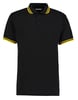 Kustom Kit Men's Classic Fit Tipped Collar Polo Black/Yellow - BT-KK409-BLK/YEL