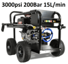 VTUFD10-15200 10HP 3000psi (200BAR) 15L/MIN Trolley Mounted V-TUF Diesel Pressure Washer with electric AND pull start facility. The VTUF D10‘s robust ‘roll cage style’ frame protects the engine and pump from damage in areas which require heavy handling. The ‘roll cage style’ frame has also proved ideal for ease of lifting and maintenance. It has the well proven electric start. The battery of the VTUF D10 is NOT mounted on the engine plate like its competitors, as this shakes the battery apart. It is mounted in a well-protected but accessible area within the top frame. The Yanmar engine and pump of the VTUF D10 is lubricated by the top performing brand V-TUF PRESSURE LUBE PL500 which is known to reduce friction down to near zero and therefore increasing the life of pumps and engines.