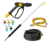 V-TUF D10 Pressure Washer comes with 10m hose, DURAKLIX MSQ (Mid-Size Quick Release Coupling) and SSQ (Small-Size Quick Release Coupling), spray gun and lance, detergent injection, plus a selection of four variations of SSQ power clean jets. The V-TUF DURAKILX System makes the hose, trigger, lance and nozzles easy to connect and disconnect with out the need for tools. Now also comes with Turbo Nozzle - Doubles your cleaning power and cleaning speed is 3 times faster than a standard jet.