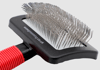 This brush is firm and suitable for long and thick hair, perfect for the Akita, Collie trousers, long hair GSD, Huskies and similar. Great to reach into the coat and release matting and knots and loosen debris and dirt. Smaller and easier for Pet owners as well as Groomers, with Firm pins.