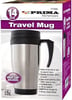 The Prima Travel Mug has a safe, splash proof lid to protect against spills. Maintaining the temperature of hot and cold drinks, the Prima Travel Mug is a durable stainless steel design with a drink-through lid that's perfect for tea and coffee when you're on-the-go. With a luxurious satin finish and robust handle, the Prima Travel Mug fits most cup holders for suitability in most cars and vehicles.