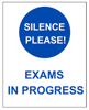 White Circle Silence Please/Silence Please Exams In Progress Quiet Test Papers Text on a Blue Background - Sticker/Sav Non-see Through - Choice of Sizes