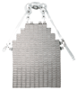 Apron in ultra-light aluminium plates linked with stainless steel rings, reversible. 55x70 cm. Withstands knife blows and its weight of 900 g is evenly distributed on the adjustable harness.