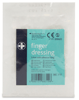 A finger dressing, packaged and designed in such a way that it is possible for the injured person to dress their own finger, when a plaster is not quite adequate. The low adherent pad is attached to a soft bandage for wrapping around the finger. Small and large versions feature a small peelable tab that exposes a sticky patch for adhering the end of the bandage in place. Simple, but highly effective.