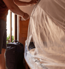 The self supporting mosquito net features a lightweight aluminium frame at the head-end to create a wedge-shape net that requires no hooks or hanging. The spacious interior has excellent air flow and zipped door panels on both sides for ease of access. With EX8 Anti-Mosquito long-life impregnation, the white mesh netting with 156 holes per sq. inch is ideal for travellers and those on expeditions staying in accommodation where hanging points may not be available.