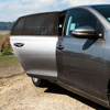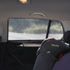 These car sun shades are the perfect way to keep glare out of passengers eyes on car journeys. This pack of 2 stretchy fabric sunshades fit over most car door shapes, blocking 70% of UV rays whilst the mesh fabric does not obstruct the view. Car windows can still be opened and closed.