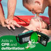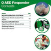 This is a comprehensive emergency CPR and defibrillation response kit. It contains all the essential equipment to safely perform defibrillation and CPR including an emergency foil blanket, gloves, a face mask, clothing scissors and moist wipes.