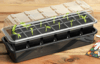 This 5 piece set is the perfect size to sit comfortably on a window sill and includes a reservoir tray, support platform, 12 cell growing tray, capillary matting and a clear cover. Each of the growing cells measures 5cm x 4.7cm x 5.8cm deep and has a capacity of 0.1 litres. With the exception of the capillary matting and the clear covers, this unit is made from recycled plastic. The growing tray can be re-used year after year and can be easily sterilised in a dishwasher.