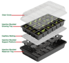 This 5 piece set includes a reservoir tray, support platform, 24 cell growing tray, capillary matting and a clear cover. Each of the growing cells measures 5cm x 4.7cm x 5.8cm deep and has a capacity of 0.1 litres. With the exception of the capillary matting and the clear covers, this unit is made from recycled plastic. The growing tray can be re-used year after year and can be easily sterilised in a dishwasher.