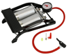 Deluxe 100PSI Double Barrel Foot Pump - Suitable for Inflating Tyres on Cars, Motorcycles & Bicycles and It Has a Trigger Lock Valve Adaptor