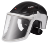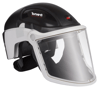 Full face positive air flow powered respiratory helmet with head and eye impact protection. UK plug version for UK & Eire sale only.
