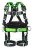 • Fluo green textile, high visible stitching, front and back fall indicators to facilitate visual inspection before working.
