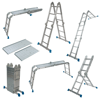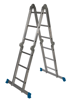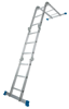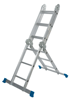 Lightweight, strong, anodised aluminium construction with 12 treads and secure click-and-lock hinges. Multi-function ladder turns into step ladder, extension ladder, stair ladder or work platform. Includes 2 durable non-slip steel planks. Full length 3.6m. Scaffold height 980mm. 150kg capacity. Weight 12kg + 4kg platform planks. Certified to EN131.
