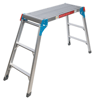 Strong, anodised aluminium construction with non-slip tread surface and anti-skid feet. Fold-away legs are secured by 2 safety catches. Ideal for rooms with high ceilings and work on outside facades. Platform dimensions (L x H x W): unfolded 1440 x 800 x 445mm, folded 900 x 470 x 165mm. Weight 5.5kg. 150kg capacity. Certified to EN14183.