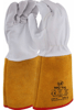 A Premium TIG Welding gauntlet made from high quality goat leather. Reinforced with a golden cow split leather cuff to offer superb protection to the wrist and lower arm. High tenacity aramid fibre stitching throughout adds longevity and further peace of mind for the lifetime of the glove.