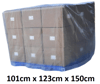 Our pallet covers are durable and at 90gsm very lightweight compared to conventional woven tarpaulins. The multi-laminate covers are equivalent to 200 gsm of conventional woven tarpaulin material. No stitches and mesh-like woven tarpaulin make this pallet covers 100% Waterproof frost resistance. The multi-layer cross-section film construction of these pallet covers are not only UV stabilized they also 100% Recyclable. The durable material that has multiple layers of the cross-section has ultrasonically welded eyelets, joints, and reinforced corners to try and retain the structural integrity of the piece while staying 100% waterproof.