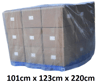 Our pallet covers are durable and at 90gsm very lightweight compared to conventional woven tarpaulins. The multi-laminate covers are equivalent to 200 gsm of conventional woven tarpaulin material. No stitches and mesh-like woven tarpaulin make this pallet covers 100% Waterproof frost resistance. The multi-layer cross-section film construction of these pallet covers are not only UV stabilized they also 100% Recyclable. The durable material that has multiple layers of the cross-section has ultrasonically welded eyelets, joints, and reinforced corners to try and retain the structural integrity of the piece while staying 100% waterproof.