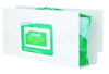 Holds 1 pack of sanitising wipes up to 355(W) x 170(H) x 85(D) e.g. clinell CW200 (NHS VJT118, Bunzl Z6CW200) or similar. Pack can be loaded from top, left or right hand sides (if mounted under a cupboard unit) and dispenses from the front.