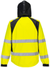Designed to keep the wearer visible, safe and dry in foul weather conditions. This lightweight stylish two tone jacket features a pack away hood for easy access, large pockets for ample storage and double storm flap to protect against the elements.