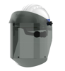 Weight balancing system variant allows secure stowing of the visor for safe and convenient working. The system supports one-handed operation, allowing the visor to be quickly lifted and locked in place above the helmet crown for maximum working clearance.