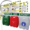This complete electric shock rescue point contains an Electric Shock Rescue Hook, a British Standard Compliant First Aid Kit, a Burn Stop Burns Kit, a Sign and an Electric Shock Guidance Poster.