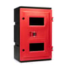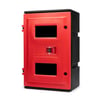This extinguisher cabinet can facilitate 3 extinguishers (2 large and 1 small). It is a fully weatherproof product with triangular key locks and an integral key box which protects it from unauthorised use.