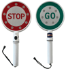 Portable Stop And Go Safety Warning Signs. Dual Functionality: Reversible design with clear STOP and GO instructions on both sides for effective traffic control. High Visibility: Bold lettering and bright colors ensure visibility in various lighting conditions.