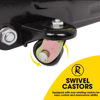 Equipped with rear rotating castors for easy, control and manoeuvre ability. Built-in one piece hydraulic unit with pump-through action designed to prevent the handle locking at Maximum ram extension. 135mm to 325mm height range which is an incredible range.