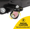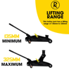 Equipped with rear rotating castors for easy, control and manoeuvre ability. Built-in one piece hydraulic unit with pump-through action designed to prevent the handle locking at Maximum ram extension. 135mm to 325mm height range which is an incredible range.