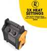 The RWCHT1 heater has 3 different heat output settings which are 20w, 1000w and 2000w. When on the lowest setting of 20w the heater can be used as a conventional fan. The compact design makes the heater easy to store away and means it takes up minimum space.