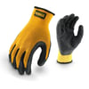 The DEWALT DPG70 is a textured latex rubber coated gripper glove. The rubber coating provides superior abrasion resistance, while the knit shell keeps the glove breathable. It has an ergonomic design and a seamless fit. Uses include assembly, material handling, general construction, and HVAC.