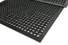 A cost effective open top rubber mat. An anti-slip mat designed to make the working environment safer. The open top design allows for drainage of water and accumulated debris. This heavy duty mat lifts the user off any slippery surfaces and gives comfort and relief to the body.