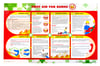 A prominently displayed First Aid for Burns Poster outlining essential information for administering first aid in cases of burn-related injuries. Designed for easy visibility.