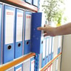 Lever Arch archive storage system combining BiG340 shelving with custom-fitting file holders. Available as a single or double depth bay and with 3 or 6 shelves.