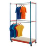 Manufactured from premium-grade European steel, in a durable powder-coated blue and high-visibility orange finish, the BiG340 Garment Rail Trolley uses the simple assembly principles of the boltless, stud and keyhole design and comes with 2 hanging levels and a choice of 3 width sizes for maximum storage flexibility. This makes them ideal for bulk garment storage in stockrooms, warehouses and retail outlets.