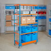 Manufactured from premium-grade European steel, in a durable powder-coated blue and high-visibility orange finish, these BiG340 Shelf Trolleys come supplied with five galvanised steel shelf levels. The base and castors are bolted to the base of the Trolley to maximise its strength, rigidity and mobility.