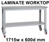 BiGDUG Heavy Duty Height Adjustable Mobile Workbench - 860-1280h x 1715w x 600d mm - Laminate Worktop - [BDU-HDMWB176L]