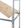 Rugged Oriented Strand Board is used for heavy construction but combines well with our Zinc plated steel shelving to create attractive merchandise displays.
