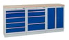 These 2041mm wide workbenches use a combination of three of our modular garage cabinets with a 38mm Multiplex or Stainless Steel worktop.