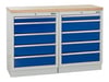 These 1361mm wide workbenches use a combination of two of our modular garage cabinets with a 38mm Multiplex or Stainless Steel worktop.
