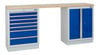 These 2041mm wide workbenches use a combination of two of our modular garage cabinets with a 38mm Multiplex or Stainless Steel worktop.