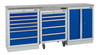 These 2041mm wide workbenches use a combination of two of our modular garage cabinets and a 5 drawer roll cabinet with a 38mm Multiplex or Stainless Steel worktop.