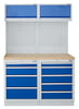 The cabinets are topped with a hard wearing 38mm multiplex plywood or Stainless Steel worktop, perforated tool hook panels and a bank of wall cabinets. A full range of took hook accessories are available to maximise your organisation and productivity.